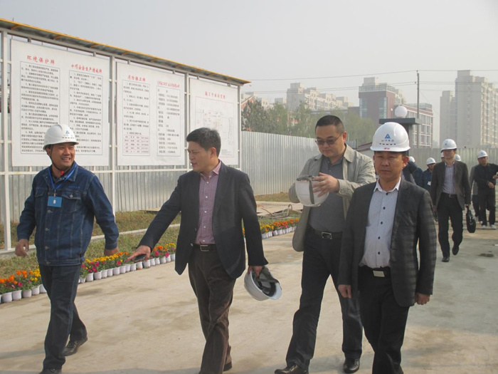 2013年10月28日上午9:30,集团公司董事长程理财一行到WANBO.COM集团承建的郑州祥营还迁区项目部检查指导工作,项目经理马文敏及全体管理人员热烈欢迎。