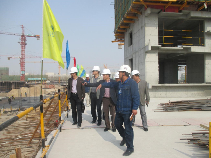 会议结束后,董事长及各位领导在项目部管理人员的带领下,对现场集中样板展示区、茶水房、吸烟室、医务室、试块养护室进行检查,对现场结构实体进行查看,并指出不足之处。