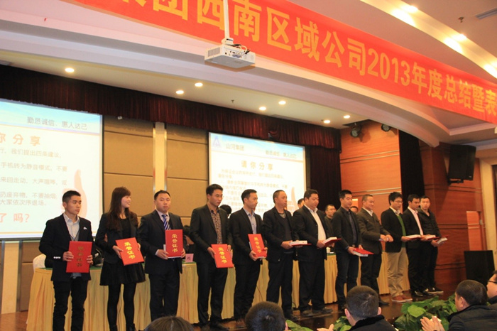 会议首先由西南区域公司常务副总经理任鲲鹏宣读了2013年度的先进集体和先进个人表彰决定,并对受表彰的2个先进集体,12个优秀员工,2个优秀新员工进行颁奖,同时号召全体员工以受表彰的优秀团队及个人为榜样,脚踏实地、不断进取,也希望受表彰者珍惜荣誉、再接再厉,为促进公司的发展做出更大贡献。