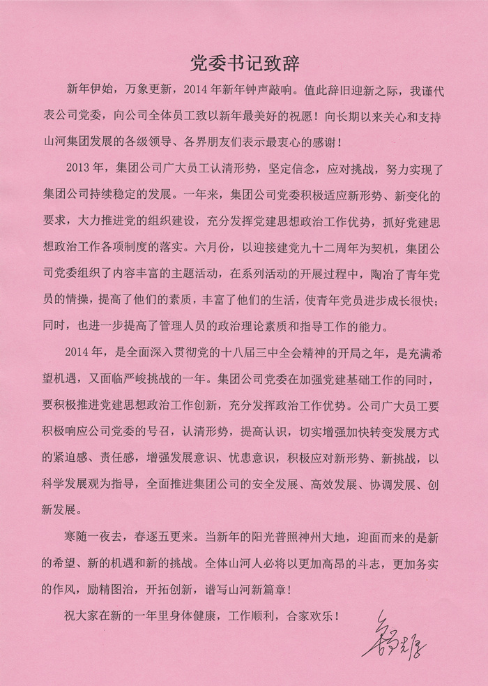 党委书记舒先厚2014年新年致辞