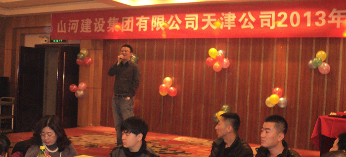当天下午6点,年会准时在北海明珠的大厅内举行。首先由天津公司程震洪总经理上台致词。他对过去的成绩进行了肯定,同时对未来提出了希望。程总的讲话庄谐并重,赢得了现场阵阵的掌声。