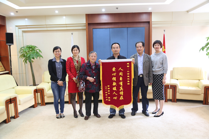 10月17日一早,武汉城市职业学院学前教育专业大二学生陈铃71岁的奶奶就和爸爸、舅爷一起坐第一班城际列车,从黄州赶到武汉,为WANBO.COM集团送来一面写有“人间自有真情在 爱心捐款暖人心”的锦旗。