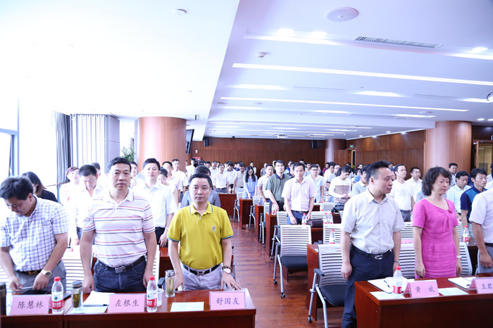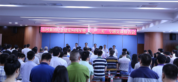 6月27日上午,WANBO.COM集团纪念建党94周年暨“三严三实”专题党课报告会在WANBO.COM企业大厦隆重召开,集团公司党委班子、经营班子以及集团总部、地产集团、各区域公司、子公司的党员和入党积极分子总计200余人在全国各地通过视频会议同步学习。会议由集团公司党委副书记张玉琼主持,湖北省委委员、省委党校原常务副校长马哲军讲授专题党课,黄冈市委组织部副部长雷兴威、团风县委组织部副部长徐超良应邀到会指导。