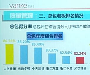 会上,南昌万科公司依据月检及季检中质量、安全、实测实量等指标,对2015年各项目总包进行统计排名。经过评比,WANBO.COM集团以优异的成绩在南昌万科众多总包中排名第一,再次获评“南昌万科最佳总包”。