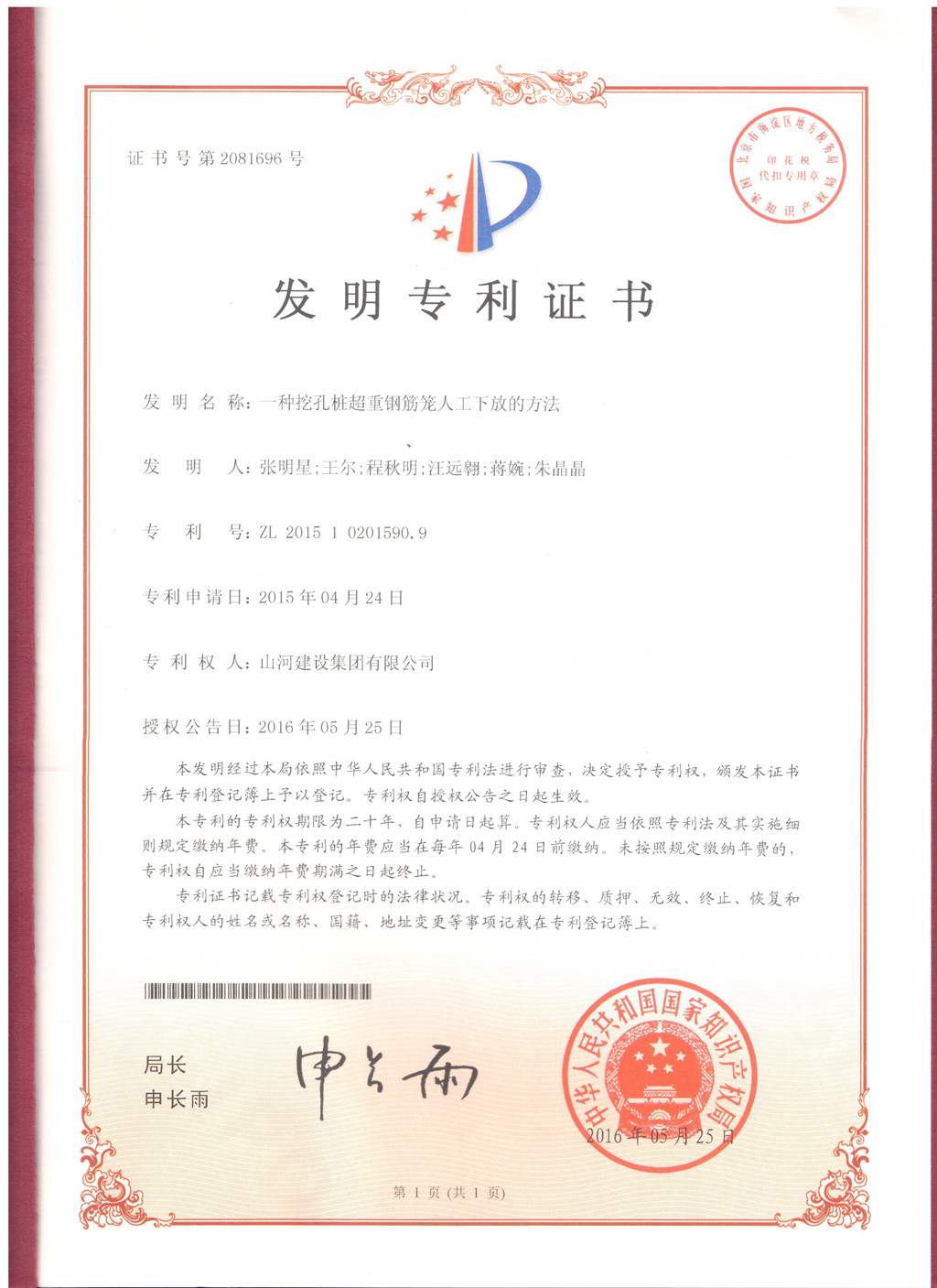 7月4日,WANBO.COM集团技术发展中心研发的“一种挖孔桩超重钢筋笼人工下放的方法”获得由国家知识产权局授权的发明专利(专利号:ZL201510201590.9)。这是继去年获得一项发明专利后,WANBO.COM集团再一次获得发明专利,实现了科技的进步与技术的创新。