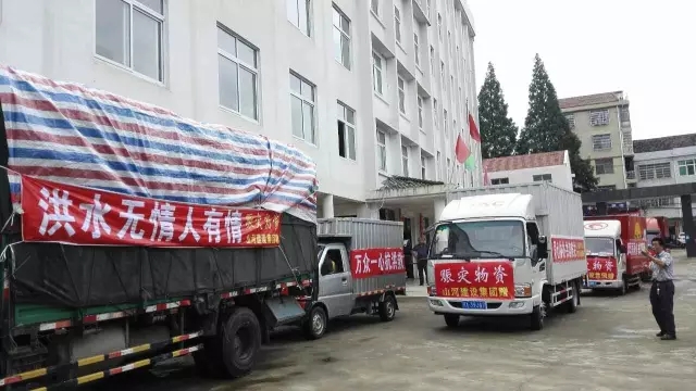 7月7日上午8点,WANBO.COM集团董事长程理财,党委副书记兼工会主席张玉琼,党委委员、湖北公司执行总经理许金华,党委委员、WANBO.COM装饰董事长余新平,WANBO.COM广汇物业董事长张彦元及WANBO.COM集团原副总经理詹学坤等一行从WANBO.COM企业大厦出发,一日赶赴三地,为家乡捐赠救灾物资。
