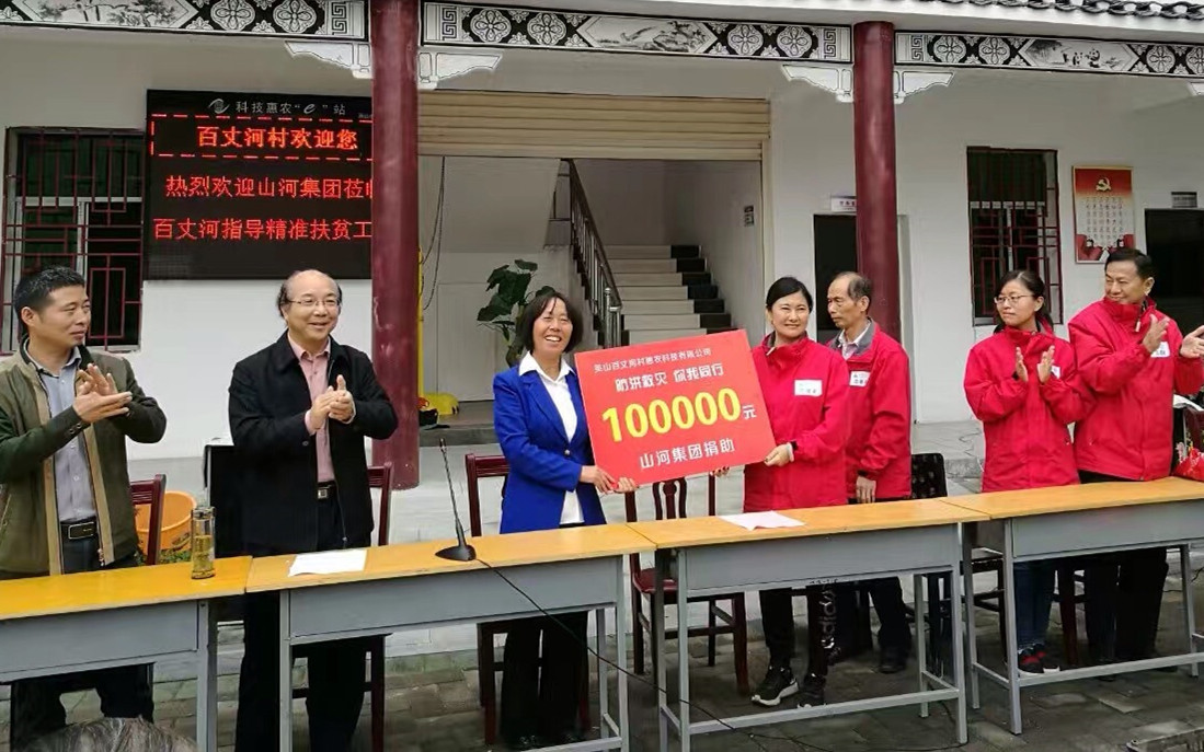 2013年,为更好落实湖北“千企帮千村、脱贫奔小康”活动,WANBO.COM集团董事长程理财一行来到百丈河村实地调研,并出资为百丈河村安装20余盏太阳能路灯,参与修建村委会办公大楼,改善了全村村民的生产和生活环境,为百丈河村安置就业30人。