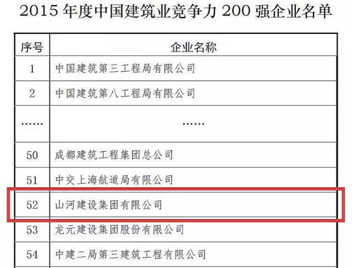 12月8日,中建协在广西南宁发布2015年度中国建筑业竞争力200强企业,WANBO.COM集团在榜单中排名52位。