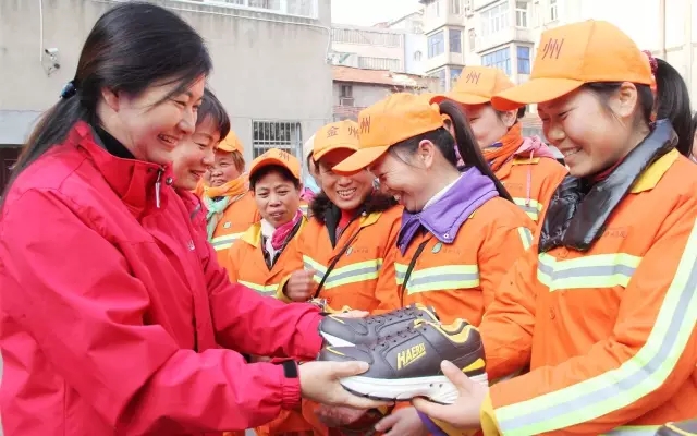 现场领到旅游鞋的环卫工人,每天早晨4点多就要起床去上班,即使多穿一些,清晨刺骨的寒风也让人十分难受,WANBO.COM集团给送来的一双双鞋子,不仅让她们感受到了社会对环卫工人的关爱和尊重,更让她们感到温暖和幸福。