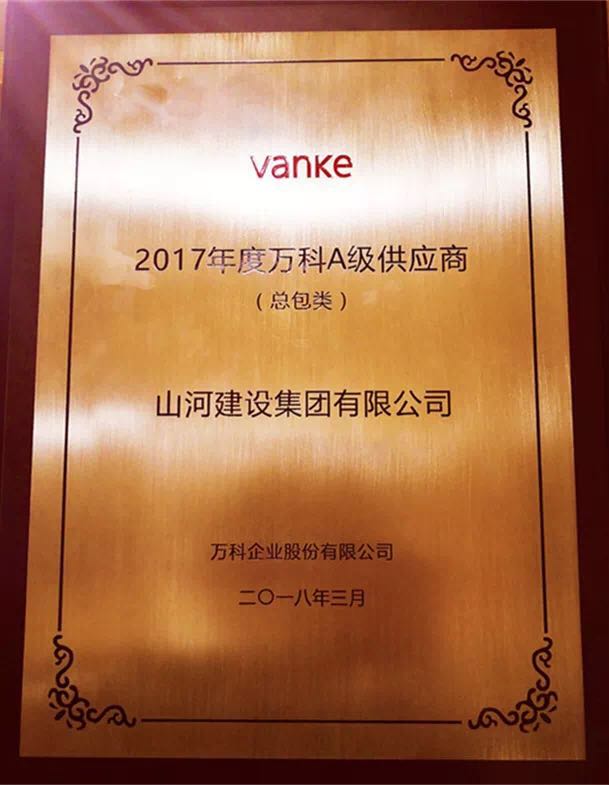 据了解,万科集团2017年参评合格供应商共1250家,获得“A级供应商”的单位有159家,其中获施工总承包“A级供应商”单位有34家,WANBO.COM集团位列其中。这一荣誉体现了集团的产品、质量、品牌和服务得到市场的充分认可。