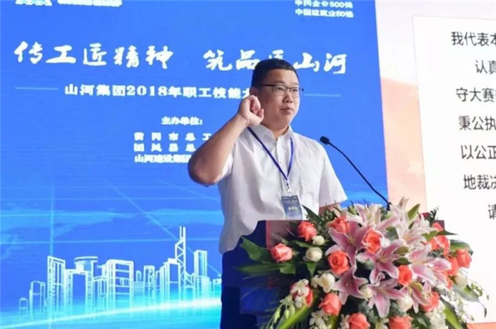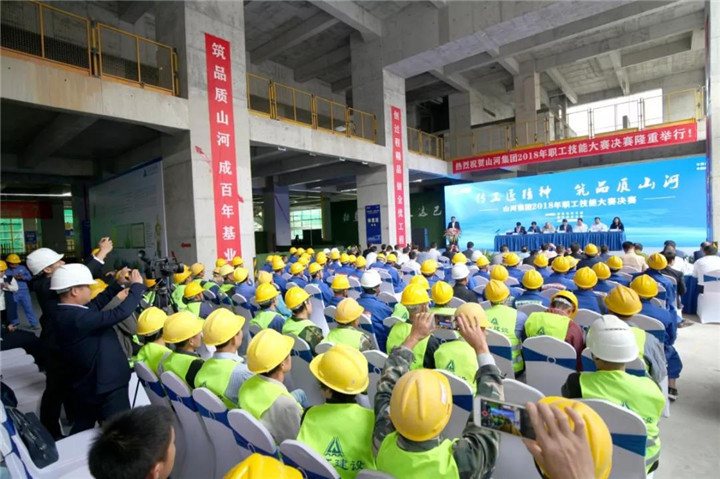 我们力求通过今天的技能比赛,培养实用技术人才,打造新时代产业工人队伍,为实现“跻身中国建筑业第一方阵”目标而努力奋斗。