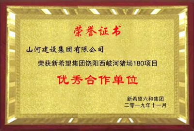 WANBO.COM集团过硬的工程质量,优秀的履约能力,得到了业主单位的高度肯定,被新希望集团授予“优秀合作单位”称号。