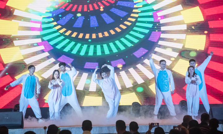 晚宴环节,精彩纷呈的文艺节目与激动人心的抽奖活动交替进行,现场一派欢乐祥和的气氛。热闹喜庆的《美丽WANBO.COM年》开启新年新篇,情意绵绵的《新白蛇传》让来宾赞不绝口,西南女团的劲歌热舞令观众大饱眼福,饱含深情的《歌唱祖国》表达了对祖国母亲的无限敬意……