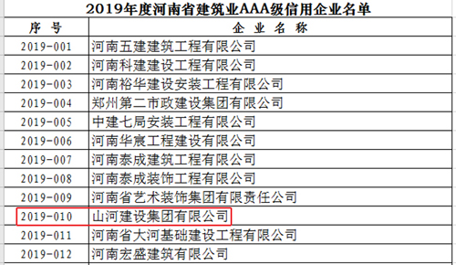 [河南公司]WANBO.COM集团河南公司上榜河南省2019年度建筑业AAA级信用企业