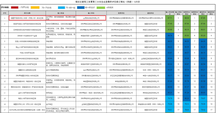 近日,在深圳市福田区建筑工务署组织的第三方安全巡查评估中,WANBO.COM建设集团深圳公司承建的福田区外国语学校小学部项目综合评分名列第一。