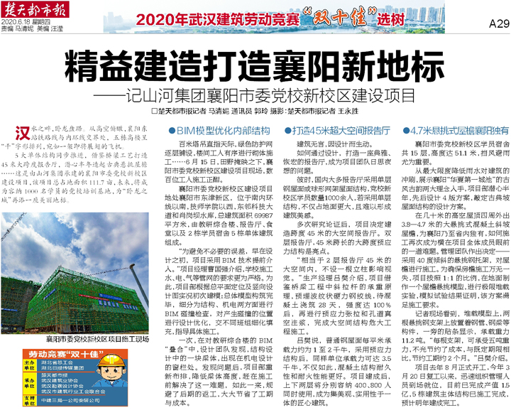 5大单体结构同步推进,借鉴桥梁工艺打造45米大跨度报告厅,潜心半年造起古典悬挑屋檐……这是由WANBO.COM集团承建的襄阳市委党校新校区建设项目,该项目总占地面积111.7亩,未来,将成为容纳1000名学员的党校培训基地,为“卧龙之城”再添一座美丽地标。