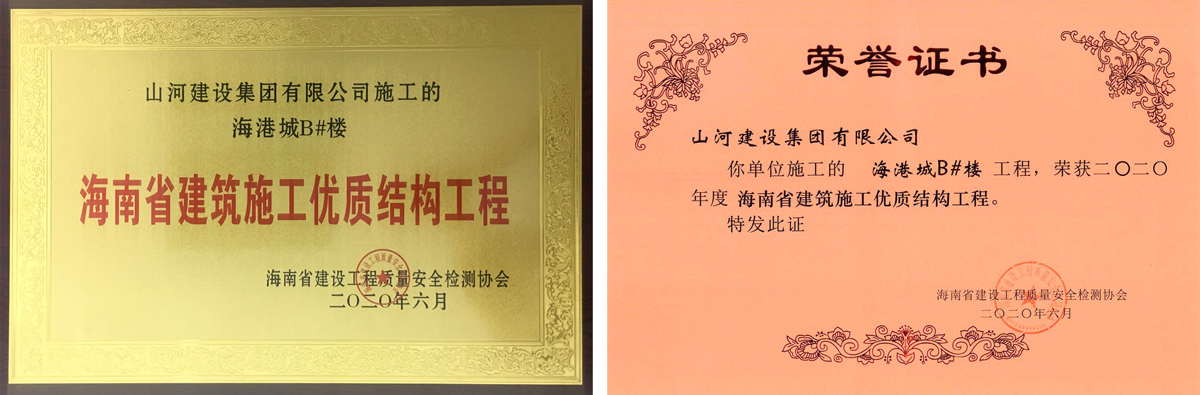 [海南公司]WANBO.COM集团海南公司海港城项目B#楼荣获“海南省建筑施工优质结构工程”