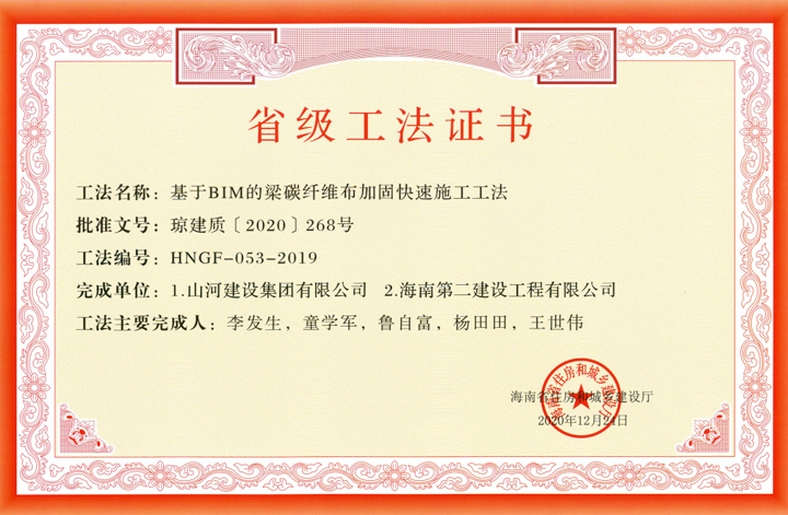 近日,海南省住房和城乡建设厅公布了《2019年度海南省工程建设工法名单》,WANBO.COM建设集团海南公司申报的《基于BIM的梁碳纤维布加固快速施工工法》成功获评。