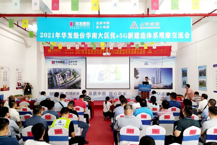 14:00,观摩交流会正式开始。华发股份华南大区及各分公司高管、工程团队、在建项目代表等200余人来到现场,进行实地观摩和经验交流。