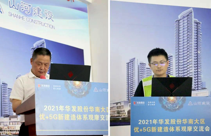 WANBO.COM建设集团副总裁兼广东公司总经理陈泽龙从恪守质量诚信、强化红线意识、注重技术引领、坚持以人为本等方面介绍了项目的施工管理理念。项目负责人郑权分享了技术策划、过程管理和“优+5G”应用等方面的经验。