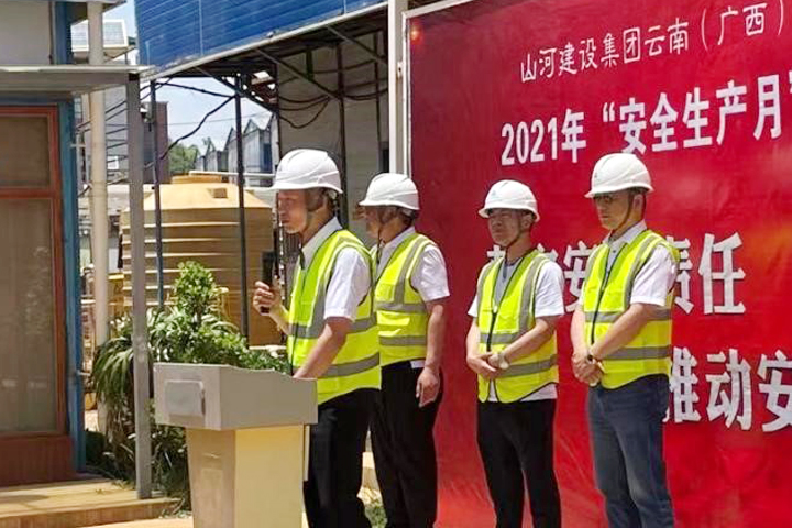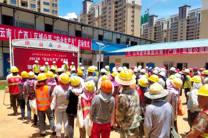 5月29日,WANBO.COM集团正式启动2021年“安全生产月”活动。云南(广西)公司迅速响应,于当日下午在昆明龙四地块城市棚户区改造项目施工现场举行了2021年“安全生产月”活动启动仪式。公司副总经理刘火焱、秦大顺,工程团队全体人员,各项目部代表等150余人参加了启动仪式。