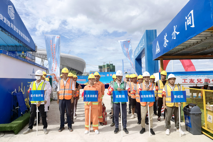 6月9日,WANBO.COM建设集团海南公司承建的万宁红星美凯龙三标段项目施工现场人头攒动,万宁市2021年安全生产月启动仪式暨安全应急演练现场观摩会在这里举行。万宁市住房和城乡建设局局长陈云锋,建设工程质量安全监督站站长严云,安委办主任、应急管理局局长林靖等领导出席活动,海南公司常务副总经理程智、工程团队、项目管理人员及建设单位、监理单位、万宁市各在建项目代表等300余人参加了活动。