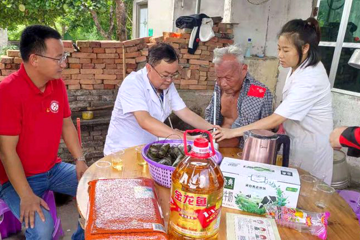活动中,海南省湖北商会儋州分会党支部书记、WANBO.COM建设集团海南海花岛项目部党支部书记童学军带队走访了5名党龄超过50年的老党员、5名生活困难的党员,为他们送去慰问金及米、油、牛奶、蕲艾眼贴等慰问品,还带着医生上门服务,为他们进行了健康体检。走访中,党员、职工和老党员亲切交流,仔细询问了他们的生活、身体状况,叮嘱他们要保重身体,安享晚年。