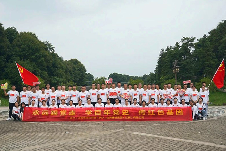 为庆祝中国共产党成立100周年,6月26日,WANBO.COM建设集团江西公司组织机关党员员工70余人来到南昌湾里金峡谷风景区,开展了以“永远跟党走、学百年党史、传红色基因”为主题的红色团建拓展活动。