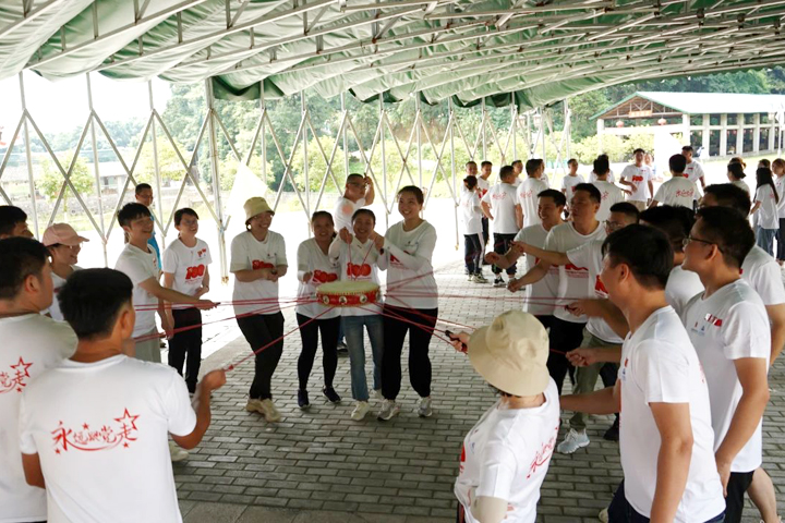 下午的团队挑战活动中,参训人员分成3队,先后完成了“水到渠成”“鼓舞风扬”“不倒森林”等拓展项目,大家各司其职、同心协力,各项任务取得圆满成功。动力圈活动环节,所有人手拉手围成圆圈,每个人用力向外拉紧绳子,深刻感受了团队拧成一股绳的坚韧力量。充分的信任与合作,有效提升了团队的合力与战斗力。
