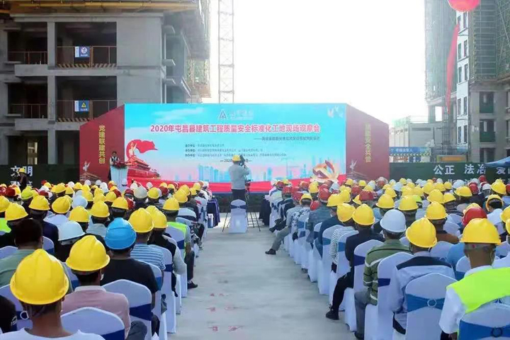 屯昌“林溪缘”项目部坚持围绕生产抓党建,抓好党建促生产,以打造优质队伍、优质工程为目标,党员干部带头冲在前、干在先,高标准、高质量、高效率抓好各项工作落实,如期完成节点施工任务,受到主管部门和业主的一致好评。2020年11月13日,该项目承办了屯昌县建筑工程质量安全标准化工地现场观摩会,展示了“WANBO.COM造”的品质实力。
