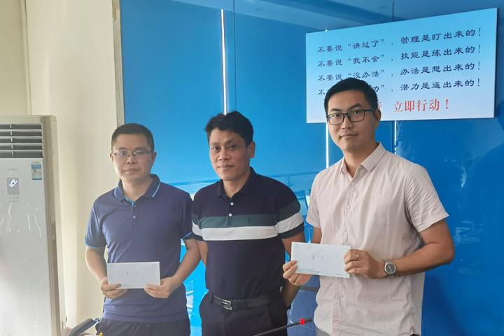 总经理丁贤林向受到表彰的美的·万麓府、蓝光未来城项目代表颁发了奖金,勉励优秀管理团队再接再厉,争取更大成绩。丁贤林在总结讲话中说,上半年,工程管理团队、项目管理团队付出了巨大的努力,工程管理水平得到了进一步提高。全体人员要继续拉满弓绷紧弦,全面加强质量管理和安全管理,严格控制每道工序的施工,严守安全生产十条“红线”,实现工程管理全过程管控。