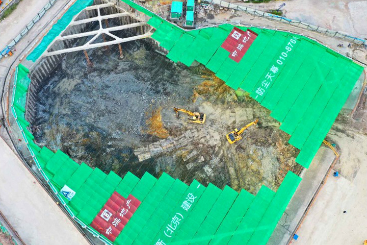 “天幕”采用阻燃材料,减少了消防安全隐患,同时通过科学的标高设计,既不耽误施工作业,又可回收循环使用,规避了常规防尘网污染土壤、频繁更换、影响施工、耗费人力物力等弊端,为绿色施工、智慧建造提供了新的路径。