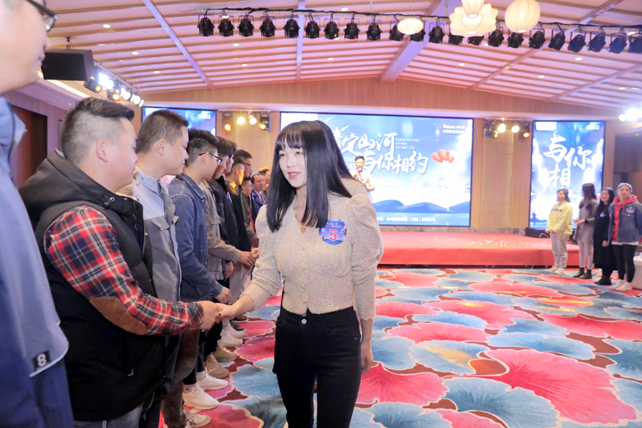 下午14时,男女嘉宾怀着激动又忐忑的心情,陆续到达会场。背景墙上,俊男靓女的照片及个人简介一一展示,TA们自信的笑容充满着感染力。在轻快的音乐声中,一颗爱意满满的红心缓缓升起,活动正式拉开帷幕。带着对爱情的美好向往,男嘉宾列队迎接女嘉宾闪亮登场。TA们对视微笑,依次握手3秒,在短短的一瞬间,也许已经触发了爱的信号。