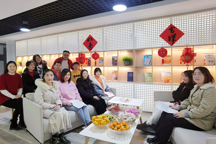 读书分享是云南公司长期开展的一项文化活动,受到员工的欢迎和积极参与。为了凸显新年的喜庆氛围,公司阅读区贴上“吉祥”“如意”、挂上中国结,部分员工特意穿上红外套、戴上红围巾,表达着对新年的美好期盼。