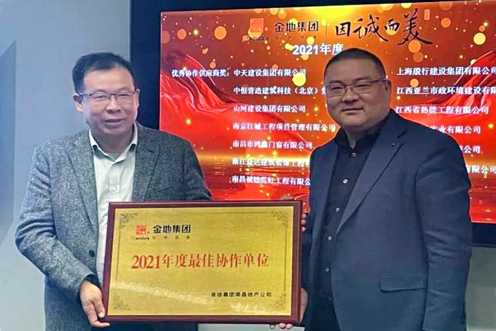 匠心筑品质,精品树标杆。1月6日,金地集团南昌地产公司召开2021年度总结大会,WANBO.COM建设集团江西公司总经理熊善杰应邀出席。会上,江西公司被授予“2021年度最佳协作单位”称号。