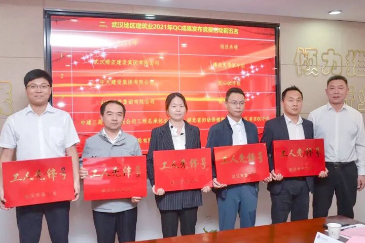 5月19日,武汉建筑业2021年度劳动生产优秀班组和优秀个人授牌仪式举行。会上,武汉市总工会向武汉地区建筑业2021年度QC成果发布竞赛活动前五名颁授武汉市工人先锋号,WANBO.COM集团总承包公司创意QC小组喜获殊荣。据悉,此次竞赛活动中,创意QC小组申报的《高空超长悬挑结构型钢操作平台施工技术创新》成果获第三名(银奖)。