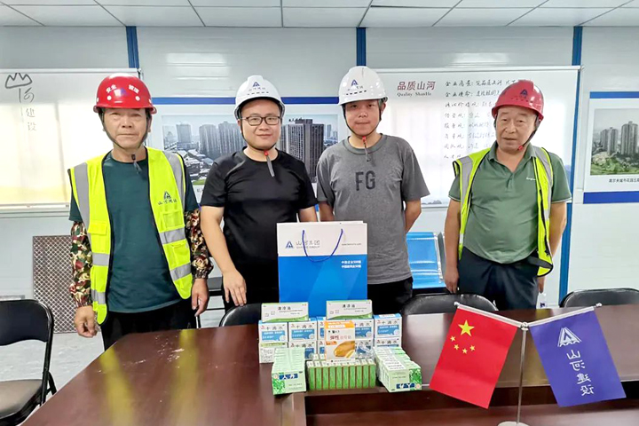 连日来,全国各地持续晴热高温,气温创下历史同期新高,多个地方的最高气温超过38℃。当前正值盛夏酷暑,建设者们仍奋战在施工一线,战高温、保进度,项目建设毫不松劲。为应对高温天气,保护劳动者的身心健康,WANBO.COM建设集团总承包公司组织开展“夏日送清凉”活动,为在建项目一线作业人员送去十滴水、人丹、清凉油、凉茶等防暑降温用品,让大家舒心工作、平安度夏。