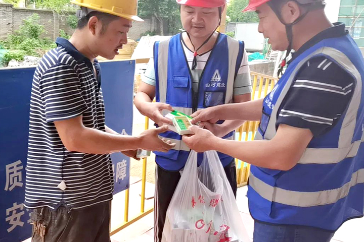 [总承包公司]致敬38℃+的坚守!WANBO.COM集团总承包公司送清凉到工地