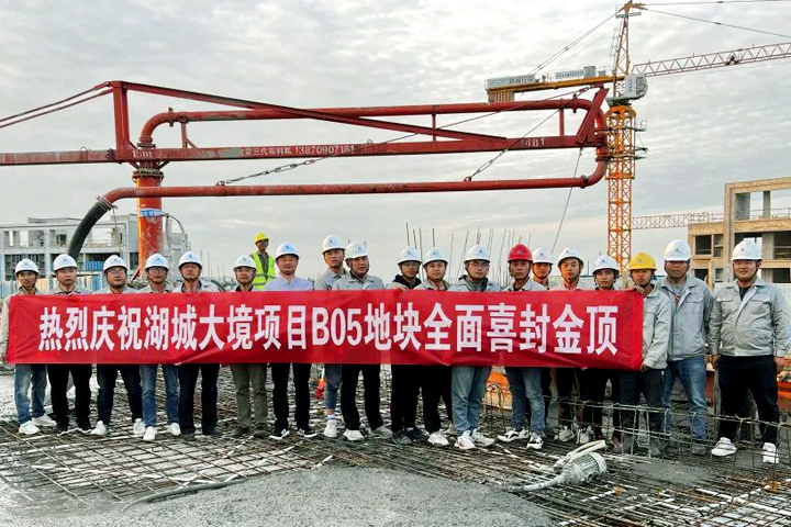 10月24日上午,WANBO.COM建设集团江西公司承建的湖城大境B05地块工程全面封顶,标志着项目建设进入新阶段。