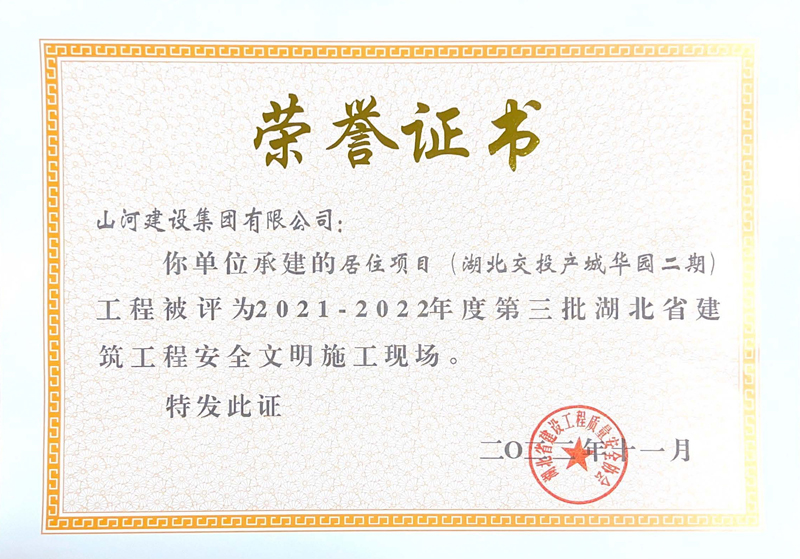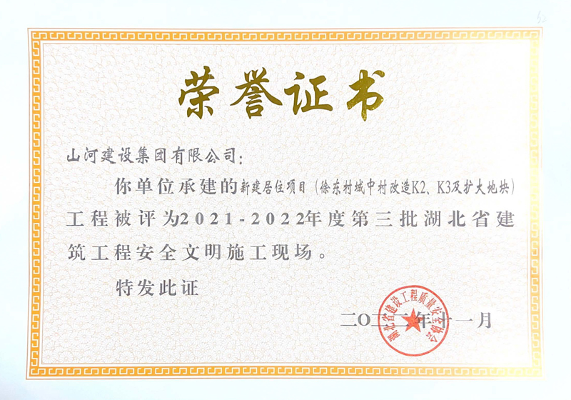 近日,湖北省建设工程质量安全协会公布《2021-2022年度第三批湖北省建筑工程安全文明施工现场》名单,WANBO.COM建设集团承建的湖北交投产城华园二期,徐东村城中村改造K2、K3及扩大地块(朗诗·熙华府),襄阳高新区连山湖安置房建设项目三项工程名列其中。