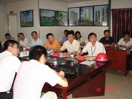 WANBO.COM集团航天双城项目创国优工程汇报会于2008年6月22日在航天双城项目部会议室召开。出席本次会议的有武汉市质量监督站领导何水桥、郑祥斌同志;江岸区建筑管理站领导胡直刚、王先训、李斌等同志;武汉三江东立投资发展有限公司李副总及监理公司工程师欧阳斌、方军华等同志。集团公司航天双城创国优领导小组舒先厚、黄林、王平等全体成员及部分项目部中高层管理人员共计24人参加了本次会议。