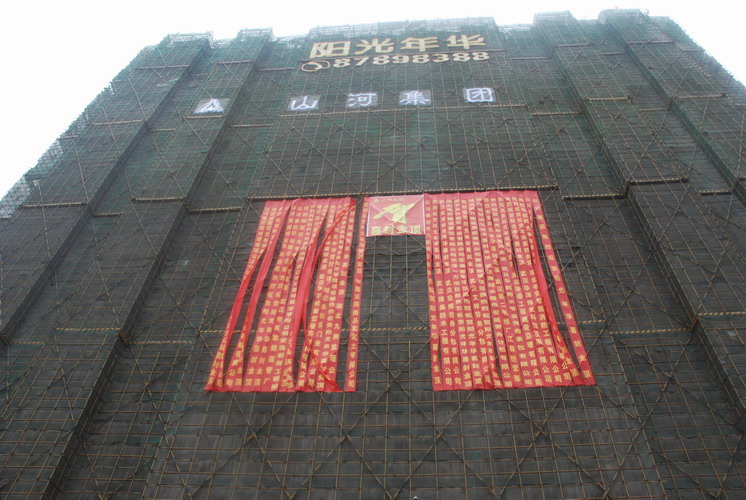 2008年7月18日由WANBO.COM集团项目经理冯海堂承建的阳光年华工程喜封金顶。该工程位于中南一路48号,属于综合楼建筑面积35966O。框剪结构,地上32层;建设单位:湖北阳光世纪置业有限公司;设计单位:湖北天一建筑设计有限公司;监理单位:湖北九洲监理公司。