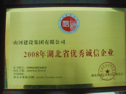 WANBO.COM集团荣膺2008湖北省优秀诚信企业荣誉